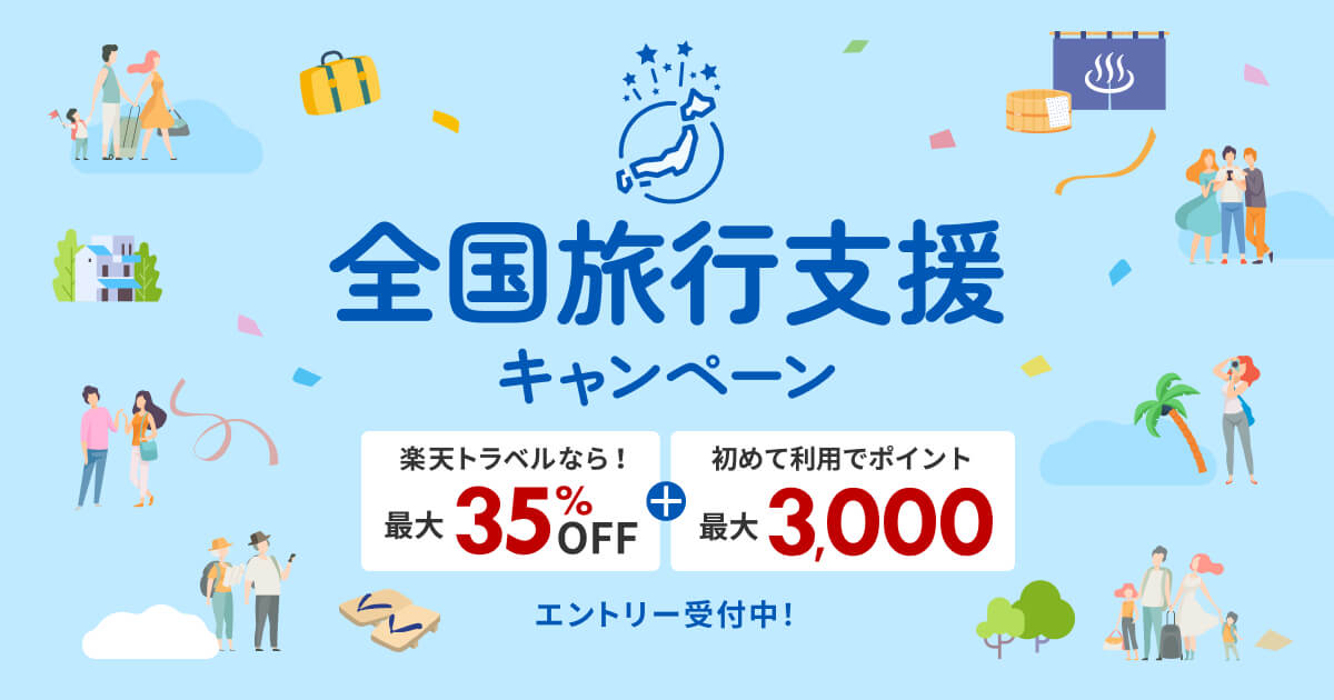 全国旅行支援キャンペーン│楽天トラベルなら最大35%OFF!さらに初めて利用で最大3,000ポイント!エントリー受付中!【楽天トラベル】